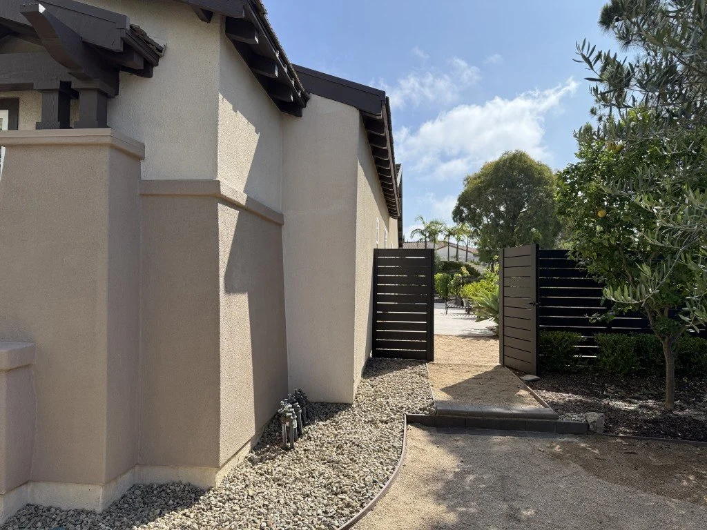 Swap all wood or vinyl fencing within 5 feet of the home for noncombustible materials such as concrete or metal (e.g., aluminum, chain link, steel, or iron).